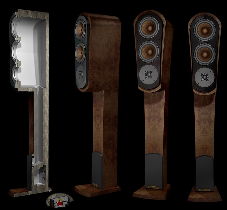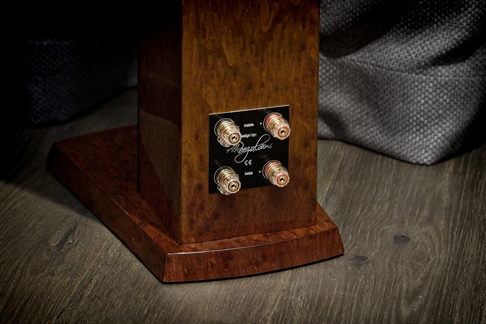 REEZOLDINI Audio speaker systems may be finished with 44 types of veneer. Finishing may be glossy or matte.